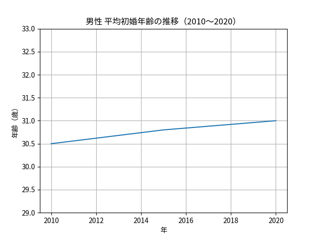 男性の平均初婚年齢は約31歳前後です。